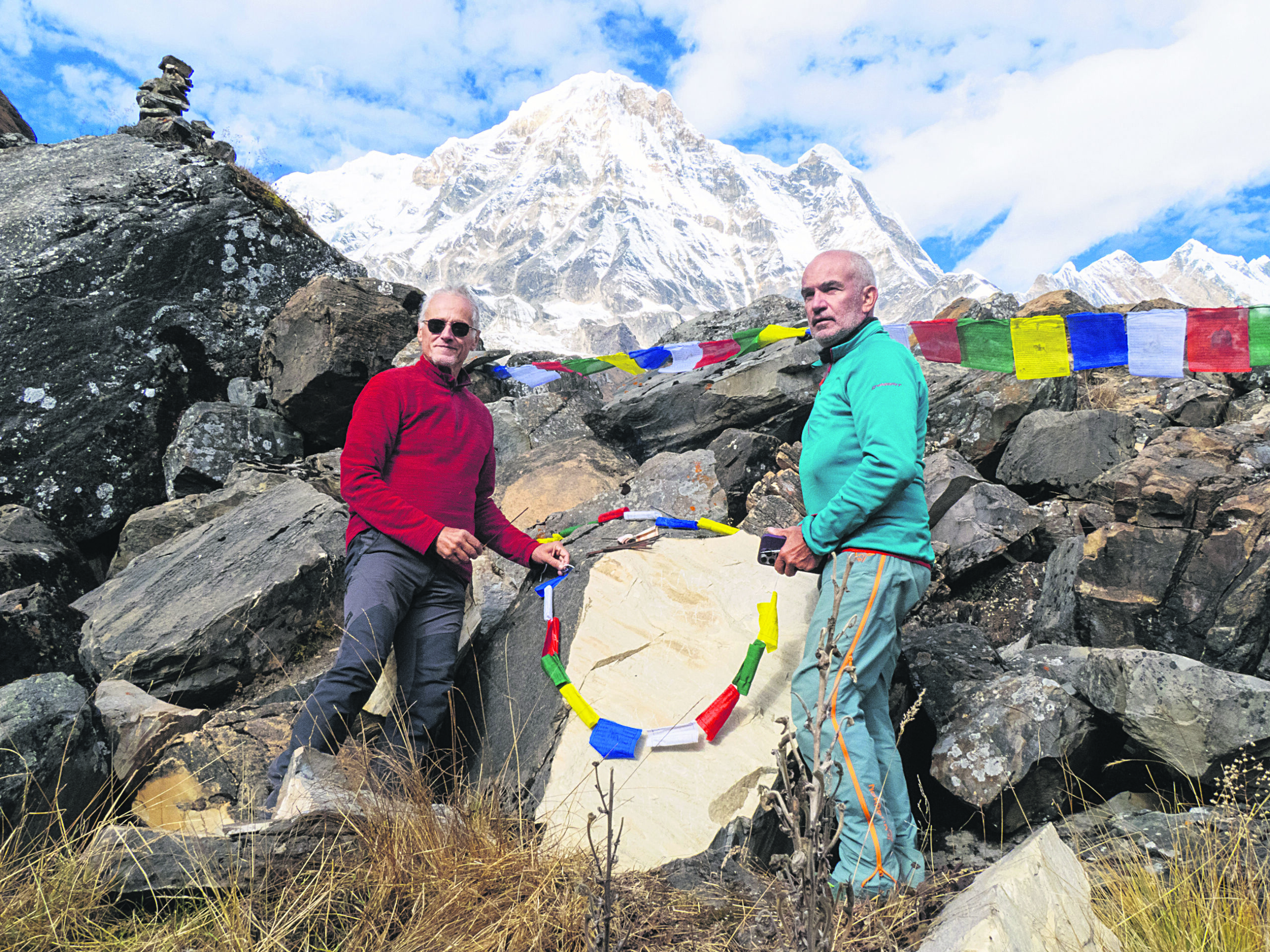 Φέτος, 40 χρόνια μετά, ο Χρήστος Λάμπρης και ο Πάνος Χλωροκώστας βρέθηκαν ξανά στην Αναπούρνα. «Δεν πήγαμε να ανέβουμε. Πήγαμε να θυμηθούμε», λέει ο Χρήστος. Εφτασαν έως το Base Camp, μίλησαν με τους νεότερους ορειβάτες, μοιράστηκαν φωτογραφίες και ιστορίες. «Ηταν σαν να ξαναζούσαμε τη διαδρομή βήμα βήμα. Μόνο που αυτήν τη φορά ήμασταν η ομάδα της μνήμης, όχι της ανάβασης». Η συγκίνηση ήταν διάχυτη. Οι νεότεροι ταξιδιώτες αγκάλιασαν την ιστορία των δύο παλιών με απρόσμενο σεβασμό. «Δεν το περίμενα. Τα παιδιά έδειξαν μεγάλο ενδιαφέρον. Μας ρώτησαν για λεπτομέρειες, μας άκουγαν με προσοχή».