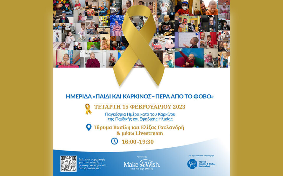 Η Ημερίδα της 15ης Φεβρουαρίου θα διεξαχθεί στο Αμφιθέατρο του Ιδρύματος (Ερατοσθένους 13, Παγκράτι), αλλά και μέσω livestream στο YouTube κανάλι του οργανισμού. Δηλώστε τη συμμετοχή σας στο https://tinyurl.com/gogold-makeawishgr.