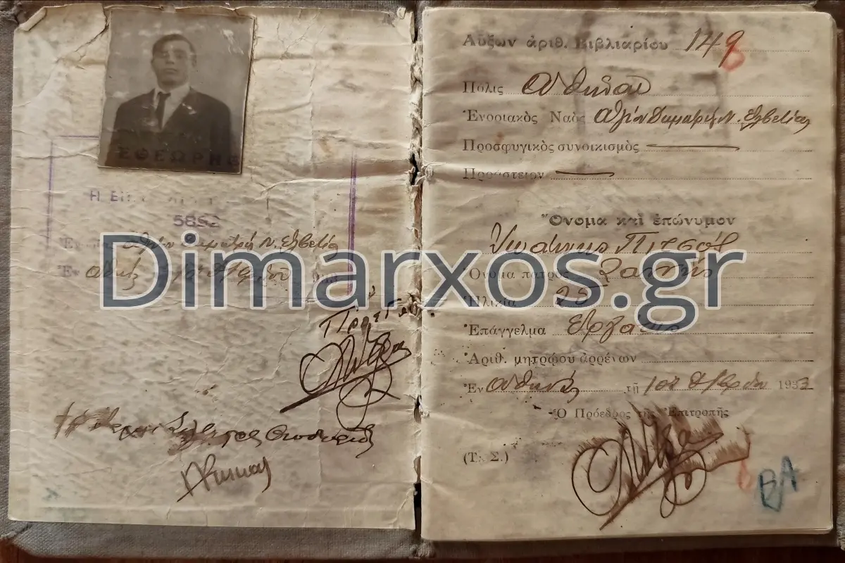 Δείτε τη φωτογραφία του Ιωάννη Ζ. Πιτσού, το εκλογικό του βιβλιάριο και την επιστολή της Κατερίνας Μ. Πετρή από το dimarxos.gr