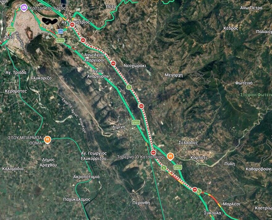 Η κίνηση των οχημάτων διεξάγεται μέσω της παλαιάς Εθνικής Οδού, ενώ τα οχήματα με κατεύθυνση προς Αντίρριο εξέρχονται από τον αυτοκινητόδρομο στον κόμβο Άρτας.