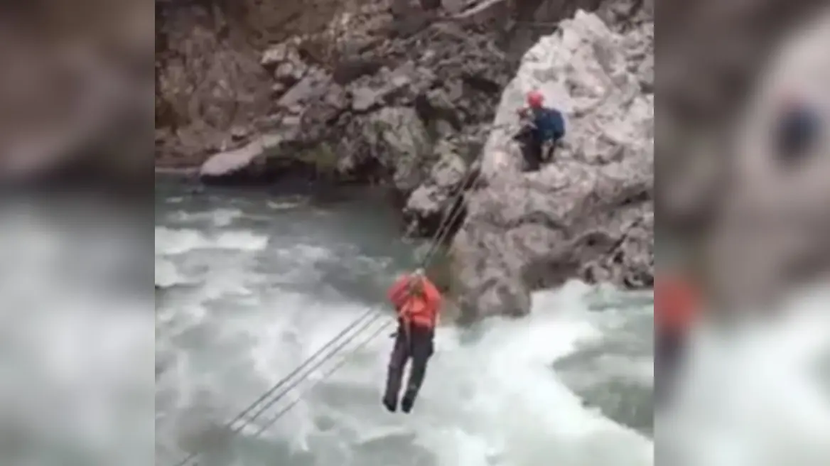 Οι πυροσβέστες κολύμπησαν στην απέναντι όχθη και με ειδικές τεχνικές και χρήση σχοινιών διάσωσης μετέφεραν το ζευγάρι σε ασφαλές σημείο περνώντας τους πάνω από τον ποταμό.