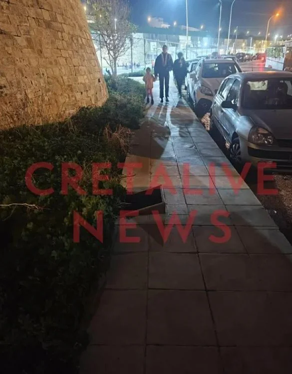 Το φρεάτιο είχε αφεθεί ακάλυπτο λόγω εργασιών για την εγκατάσταση προβολέα φωτισμού στα ενετικά τείχη, ενώ το προστατευτικό τζάμι είχε σπάσει, αφήνοντας εκτεθειμένες κοφτερές λαμαρίνες.