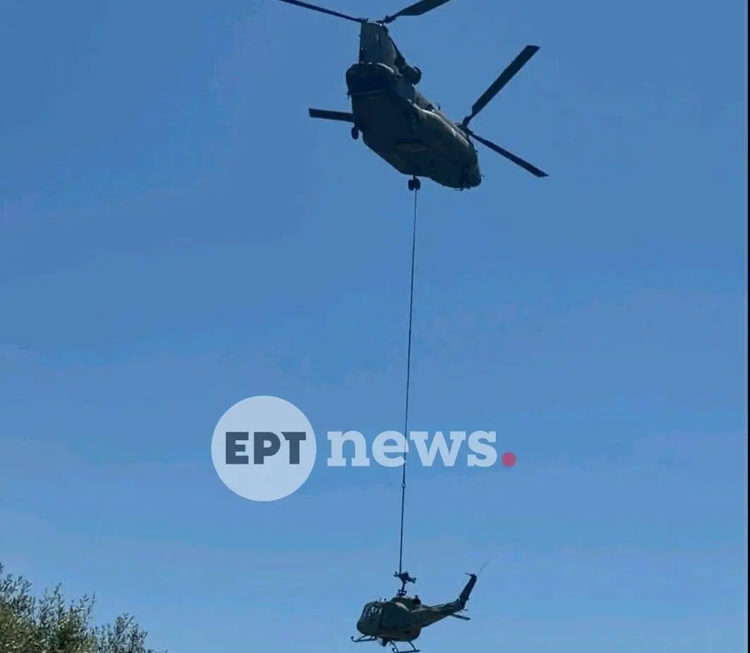 Από την πρώτη στιγμή πραγματογνώμονες και στελέχη της Πολεμικής Αεροπορίας που έσπευσαν στο σημείο , έκριναν πως ο ασφαλέστερος και ταχύτερος τρόπος μεταφοράς του μικρότερου ελικοπτέρου Έρευνας και Διάσωσης , ήταν η μεταφορά του από ελικόπτερο βαρέως τύπου που διαθέτει τόσο η Αεροπορία όσο και ο Στρατός.