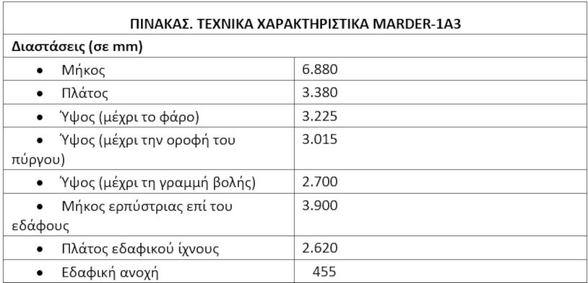 MARDER 1A3 – Tα χαρακτηριστικά του