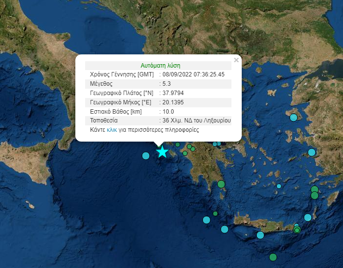 Ο σεισμός σημειώθηκε στις 10:36 το πρωί της Πέμπτης 8 Σεπτεμβρίου. Σύμφωνα με προκαταρκτική εκτίμηση του Γεωδυναμικού Ινστιτούτου του Εθνικού Αστεροσκοπείου Αθηνών ο σεισμός είχε εστιακό βάθος τα 36χιλιόμετρα ενώ το επίκεντρο είναι 36 χιλιόμετρα Νοτιοδυτικά του Ληξουρίου.