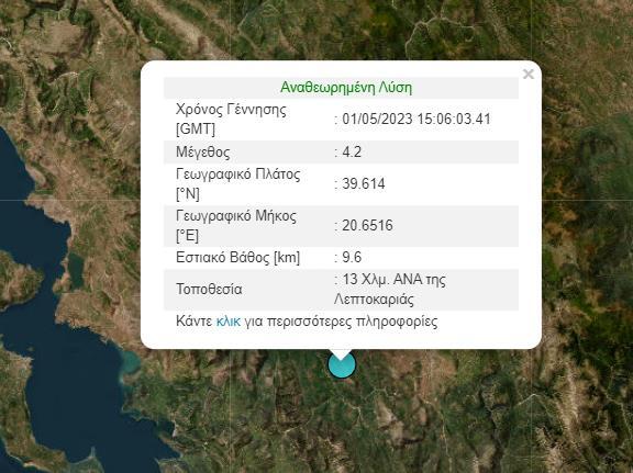 Σύμφωνα με το γεωδυναμικό Ινστιτούτο του Εθνικού Αστεροσκοπείου Αθηνών, η δόνηση σημειώθηκε 13 χιλιόμετρα ανατολικά νοτιοανατολικά της Λεπτοκαρυάς και είχε εστιακό βάθος 9,6 χιλιόμετρα. Για τη ώρα δεν έχουν γίνει γνωστές πληροφορίες για τραυματισμούς ή ζημιές λόγω της σεισμικής δόνησης.