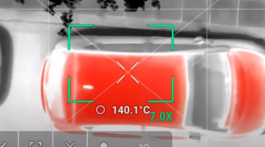 Το drone του Up Stories με θερμική κάμερα πέταξε πάνω από ένα αυτοκίνητο που ήταν εκτεθειμένο στον ήλιο. Το αποτέλεσμα είναι συγκλονιστικό: Η θερμοκρασία ανέβηκε στους 177 βαθμούς Κελσίου στο εξωτερικό του και ξεπέρασε τους 50 βαθμούς Κελσίου στο εσωτερικό.
