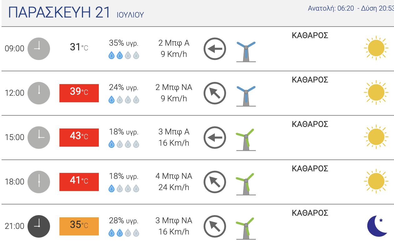 Παρασκευή 21/7 : 41°C