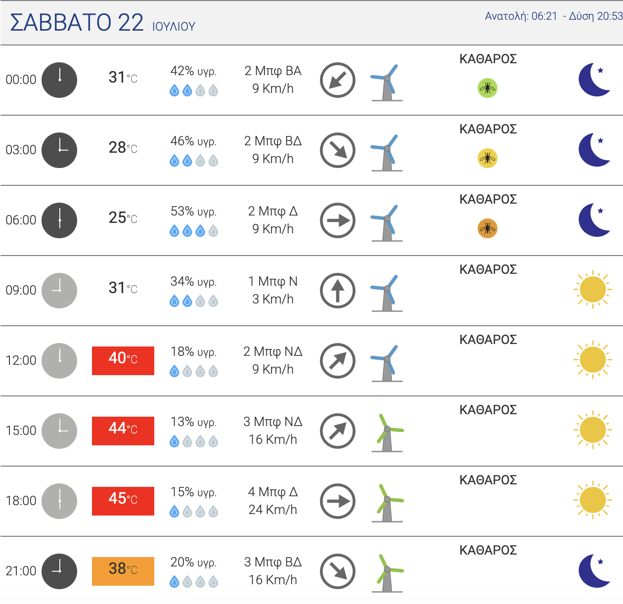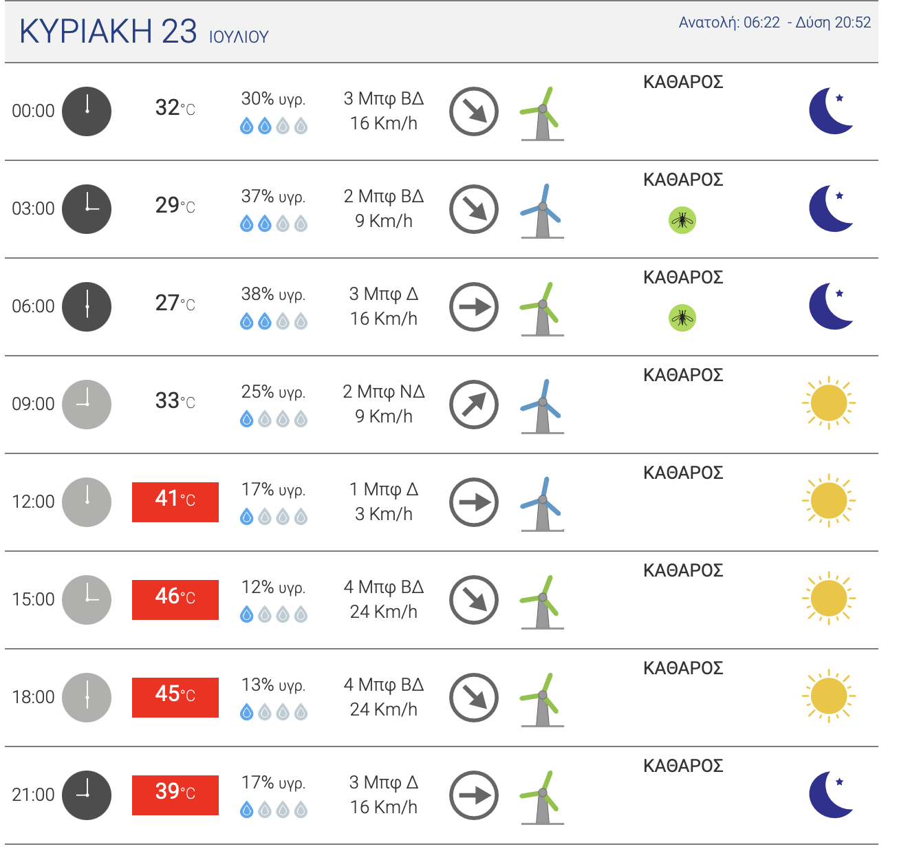 Σάββατο 22/7 : 41-42°C