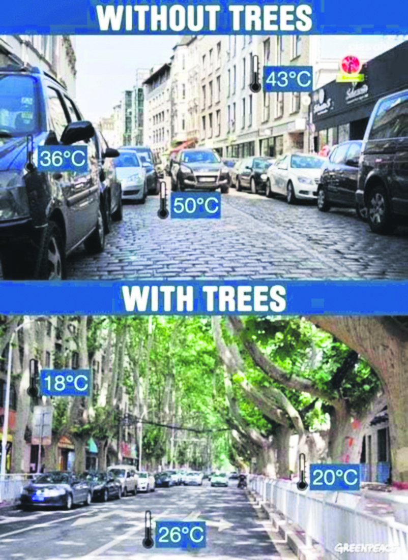Τις ώρες του καύσωνα, λοιπόν, ξεχωρίζουν έντονα οι μεγάλες διαφορές θερμοκρασίας των περιοχών με βλάστηση και αυτών που καλύπτονται με τσιμέντο και άσφαλτο. Όπως θα διαπιστώσετε και μόνοι/ες σας, οι χώροι πρασίνου είναι σημαντικά πιο δροσεροί, ενώ οι αστικές περιοχές είναι αρκετά πιο ζεστές, ενισχύοντας το φαινόμενο της αστικής θερμικής νησίδας.