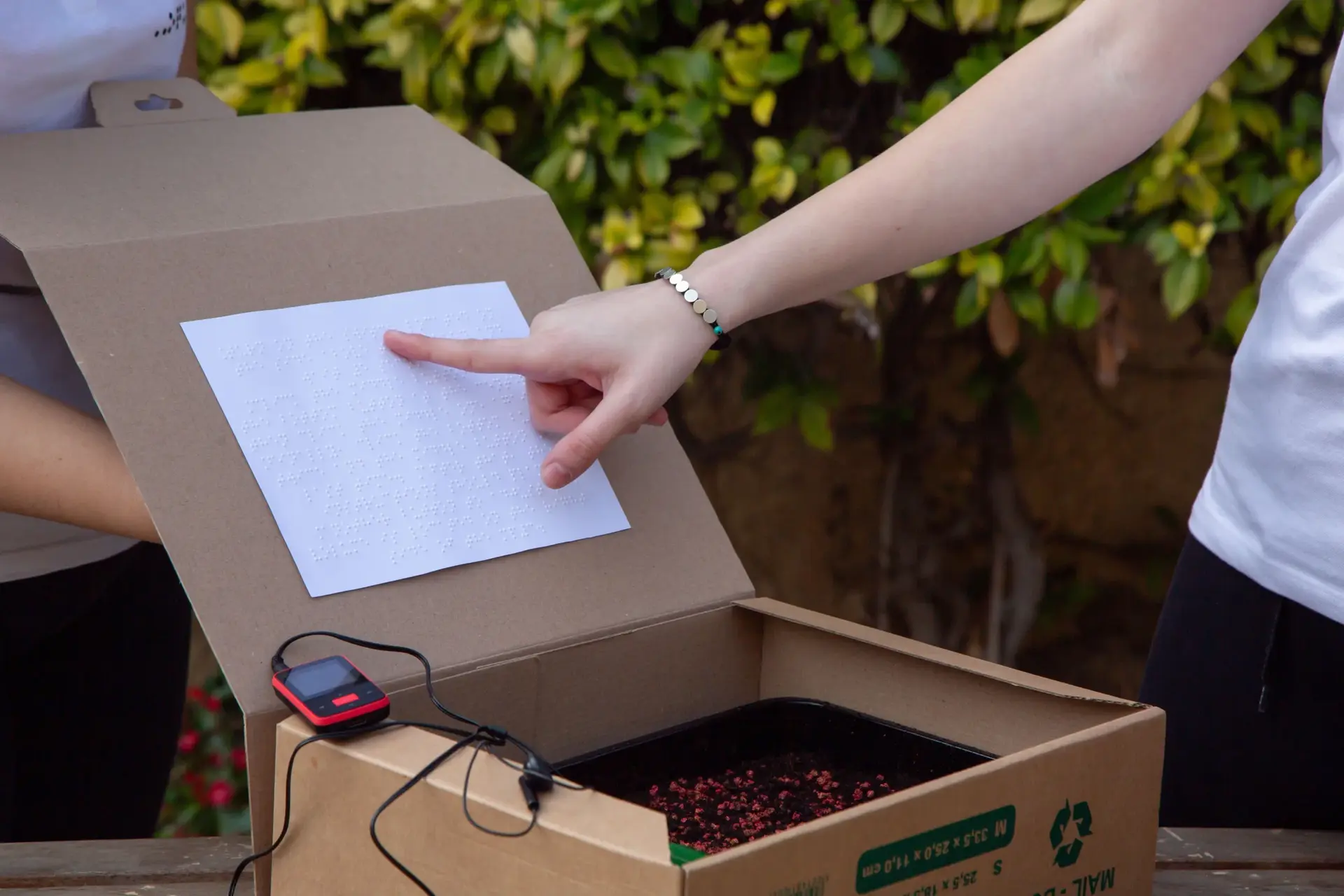 «Αναπτύξαμε ένα blind-friendly kit κηπουρικής, για χρήση εντός και εκτός του σπιτιού. Καθοδηγεί την καλλιέργεια microgreens, νεαρών χόρτων λαχανικών που συλλέγονται σε πρώιμο στάδιο ανάπτυξης, τα οποία αποτελούν μία εναλλακτική καλλιέργεια με υψηλή διατροφική αξία. Το κιτ, συμπεριλαμβάνει τις οδηγίες καλλιέργειας, χρήσιμες οδηγίες και οφέλη κατανάλωσης σε γραφή braille και σε ηχογραφημένα μηνύματα σε mp3 player» αναφέρει η διευθύντρια δημοσίων σχέσεων της εικονική εταιρείας Μύρτω Μπεληγιάννη. Τονίζει, δε, ότι το προϊόν απευθύνεται μεν σε όλους τους ανθρώπους, έμφαση ωστόσο δίνεται στα άτομα με οπτικές δυσκολίες (μερική ή ολική απώλεια όρασης).