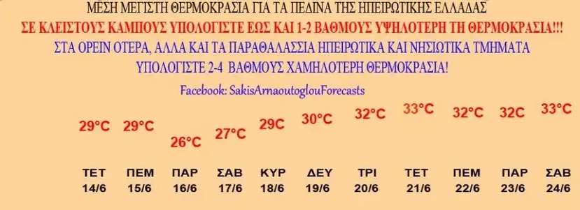 Τονίζει ακόμη πως πρώτα θέλει κάποια προσοχή, κατά την ταπεινή μου άποψη, η επιδείνωση του καιρού σε αρκετές περιοχές της χώρας το ερχόμενο Παρασκευοσαββατοκύριακο, 16-18 Ιουνίου, όπου κατά πάσα πιθανότητα θα υπάρξουν έντονες φθινοπωρινές έφοδοι με ισχυρές κατά τόπους βροχές και καταιγίδες και πρόσκαιρη πτώση της θερμοκρασίας!