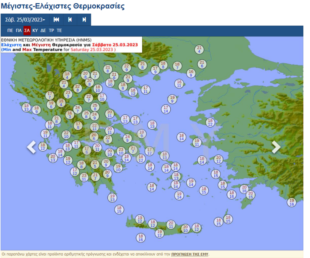 Μέγιστες θερμοκρασίες το Σάββατο και την Κυριακή 25-26/3 /2023