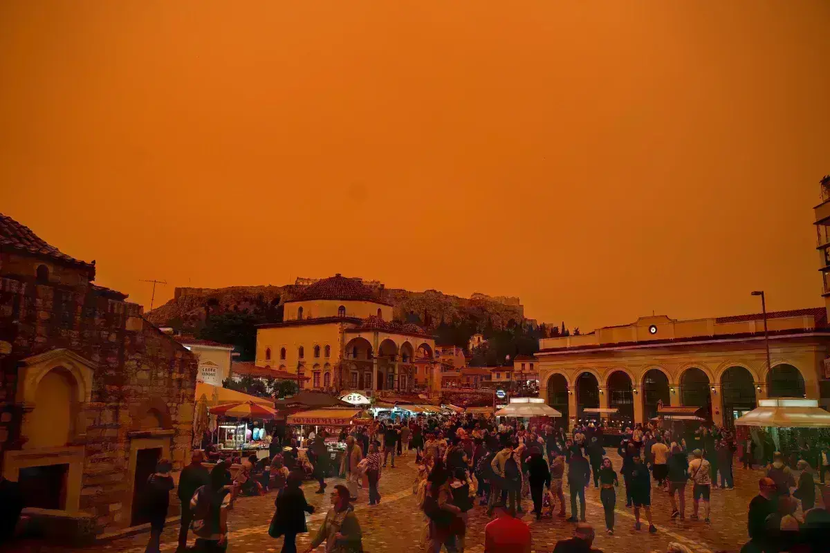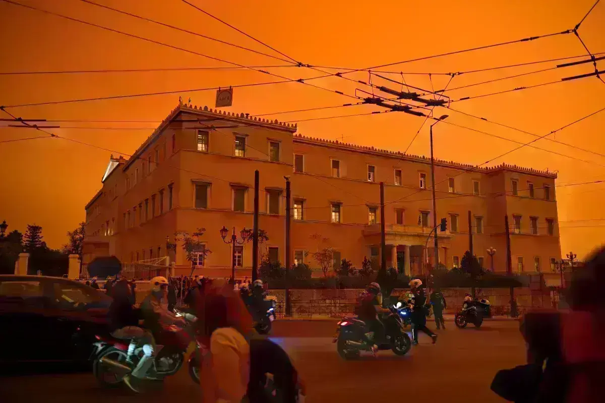 Όπως φαίνεται και σε φωτογραφίες και βίντεο από την Αττική, ένα πορτοκαλί πέπλο είχε καλύψει το λεκανοπέδιο δημιουργώντας απόκοσμο σκηνικό.