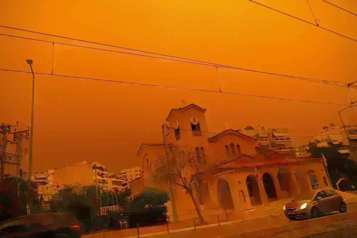 Ο ουρανός κατά τη διάρκεια της χθεσινής ημέρας ήταν κόκκινος, η ατμόσφαιρα αποπνικτική. Αυτοκίνητα είχαν καλυφθεί από τη σκόνη της Σαχάρας. Η ορατότητα στην Αττική ήταν περιορισμένη.