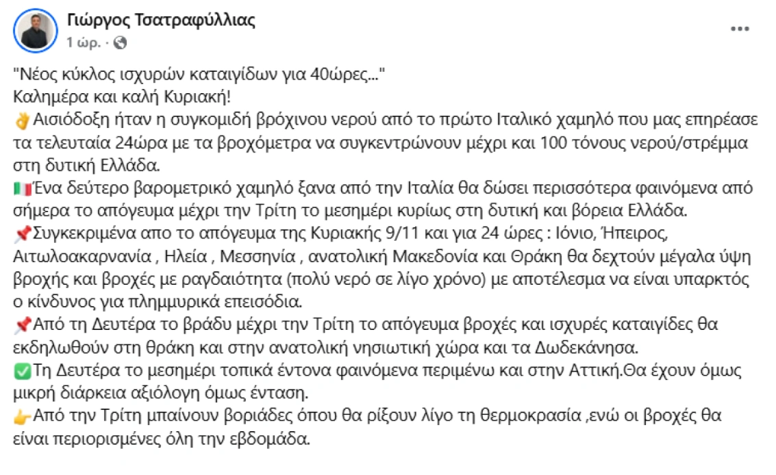 Η ανάρτηση του Γιώργου Τσατραφύλλια: