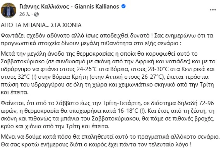 Δείτε αναλυτικά τη δημοσίευση του μετεωρολόγου: