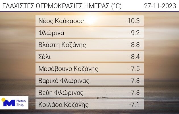 Σε ορισμένα χιονοδρομικά κέντρα, όπως στον Παρνασσό, τον Λαΐλιά Σερρών και το Καϊμακτσαλάν, αλλά και στον Νέο Καύκασο Φλώρινας το θερμόμετρο έδειξε διψήφιους αρνητικούς αριθμούς.