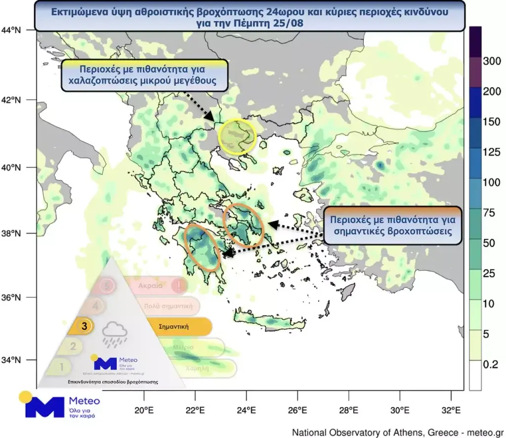 Το αναμενόμενο επεισόδιο βροχόπτωσης είναι Κατηγορίας 3 σύμφωνα με τον Δείκτη Επικινδυνότητας Επεισοδίου Βροχόπτωσης (Regional Precipitation Index – RPI) που έχει αναπτυχθεί και εφαρμόζεται επιχειρησιακά στο Εθνικό Αστεροσκοπείο Αθηνών / meteo.gr.