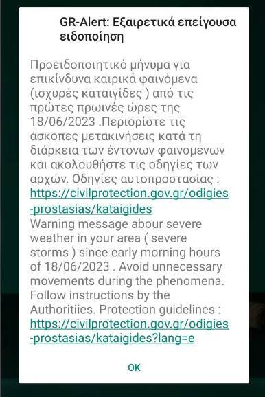 Μήνυμα από το «112» για επικίνδυνα καιρικά φαινόμενα (ισχυρές καταιγίδες) από τις πρώτες πρωινές ώρες Κυριακής, έφτασε γύρω στη 1 τα ξημερώματα στους κατοίκους σε Κεντρική και Βόρεια Εύβοια, Μαγνησία & Σποράδες. Σε αυτό, ζητείται ο περιορισμός των μετακινήσεων στις απολύτως απαραίτητες.