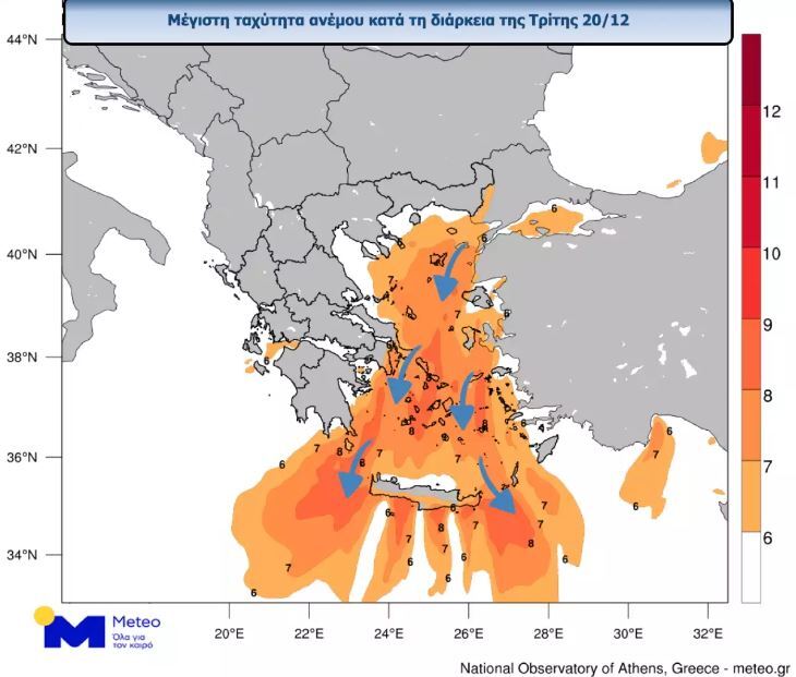 Σύμφωνα, εξάλλου, με τα προγνωστικά στοιχεία του Εθνικού Αστεροσκοπείου Αθηνών/meteo.gr, θυελλώδεις βόρειοι άνεμοι αναμένονται σήμερα στο Αιγαίο.
