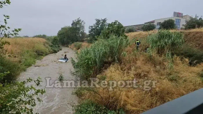 Είχε προηγηθεί καταρρακτώδης βροχή που εξαιτίας της φούσκωσε ο χείμαρρος με αποτέλεσμα να παρασύρει το αυτοκίνητο για αρκετά μέτρα.