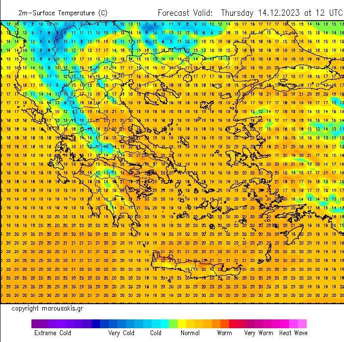 Θερμοκρασίες… βαθιάς άνοιξης θα επικρατήσουν το επόμενο 48ωρο στη χώρα μας, σύμφωνα με την πρόγνωση του Κλέαρχου Μαρουσάκη στην προσωπική του ιστοσελίδα.Ο μετεωρολόγος του OPEN, κάνει λόγο στη συνέχεια για ψυχρό κύμα που θα επηρεάσει τη χώρα μας το Σαββατοκύριακο, ενώ σημειώνει πως όλα δείχνουν ότι θα ζήσουμε για… δεύτερη συνεχόμενη χρονιά Πασχούγεννα.