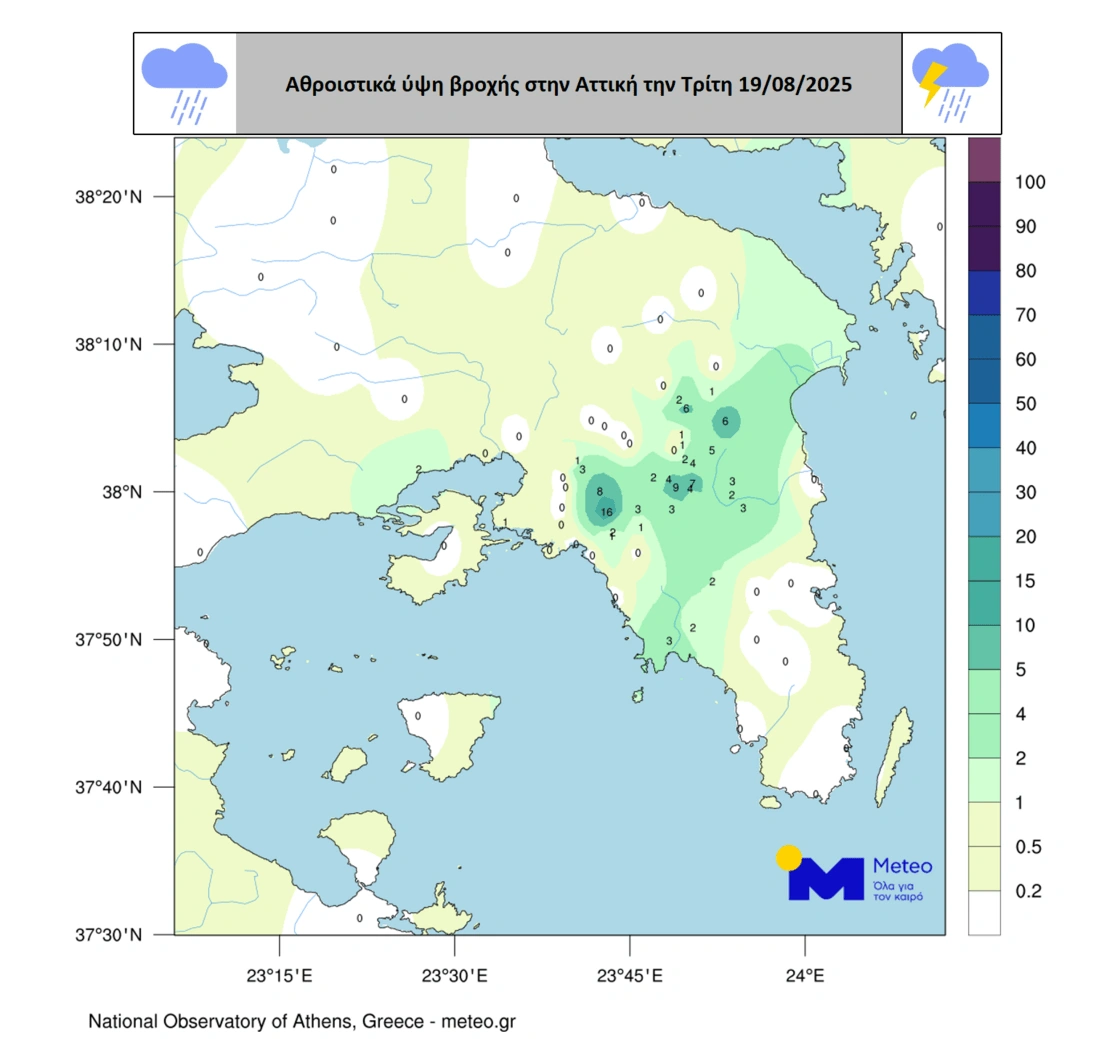 Όπως διακρίνεται μεταξύ άλλων, σημαντικά ύψη βροχής σημειώθηκαν σε κεντρικά, ανατολικά και νότια τμήματα της Αττικής, ενώ σύμφωνα με το Meteo βροχή άνω των 10 χιλιοστών στο κέντρο της Αθήνας, έχει να καταγραφεί από τις 3 Φεβρουαρίου 2025.