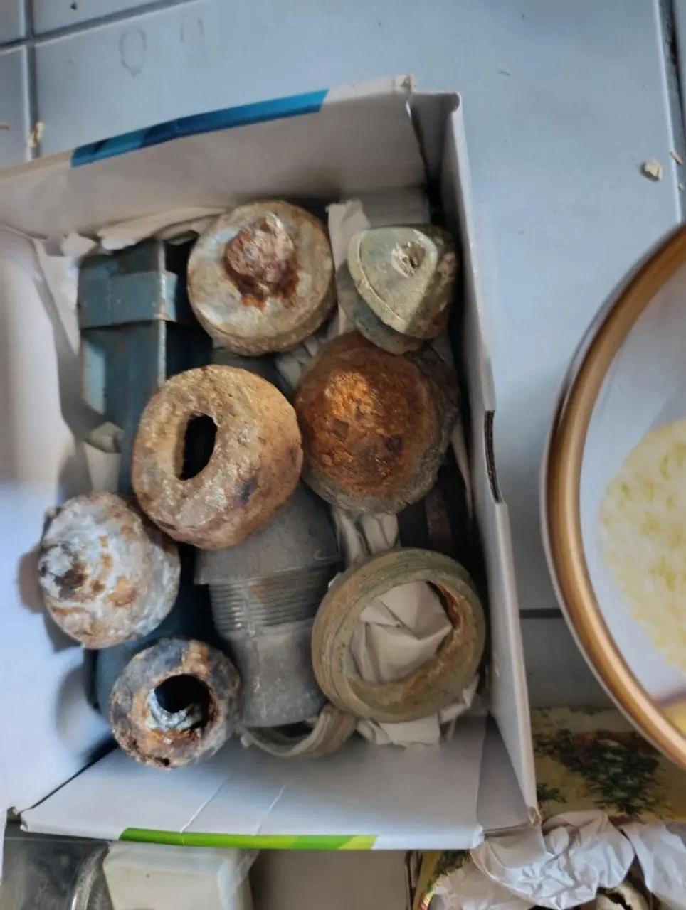 - διάφορα οξειδωμένα εξαρτήματα όπλων Β’ παγκόσμιου πολέμου,