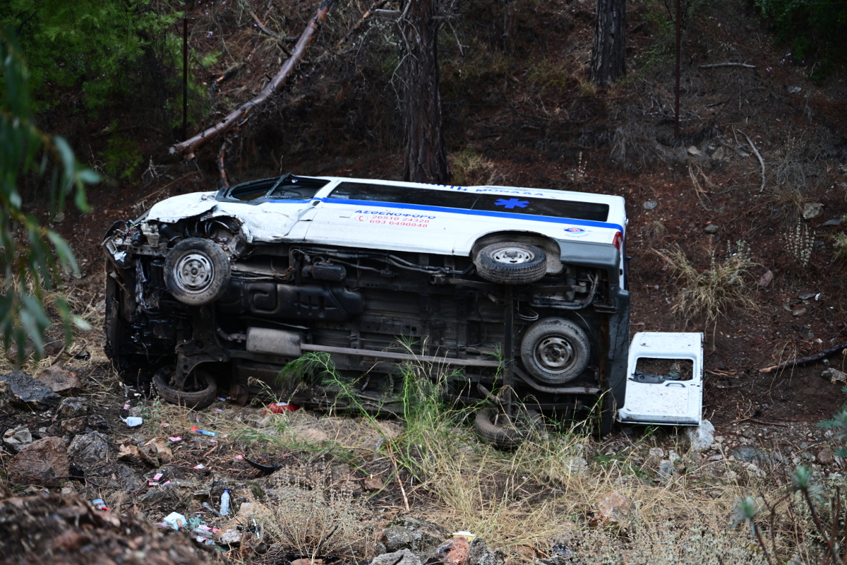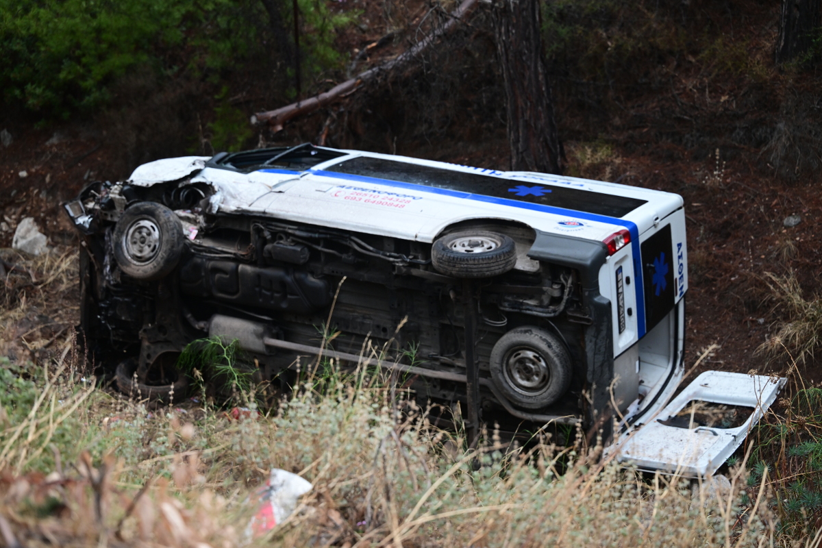 Πρόκειται για ιδιωτικό ασθενοφόρο, στο οποίο επέβαιναν τρία άτομα μεταξύ των οποίων και μία ασθενής.