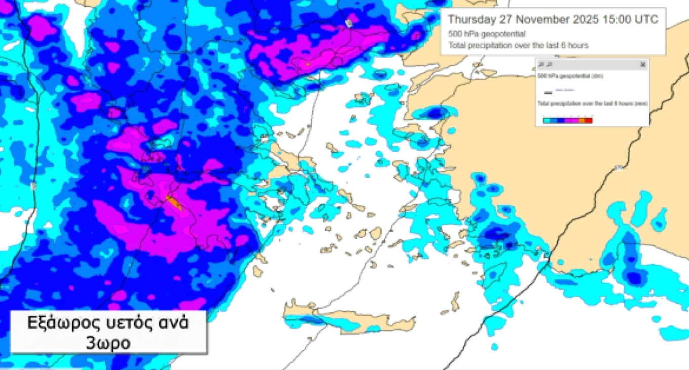 Την Πέμπτη (27-11-25) ισχυρές βροχές και καταιγίδες προβλέπονται: