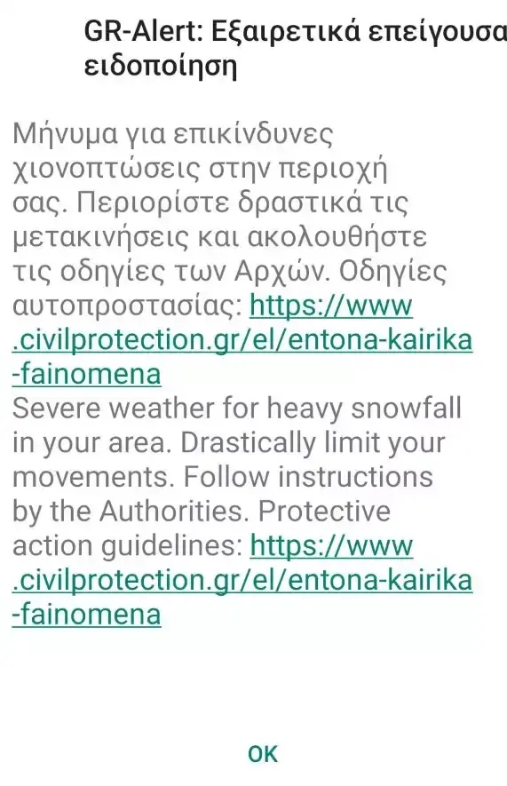 Παράλληλα ελήφθη υπόψιν, το γεγονός ότι μαθητές, εκπαιδευτικό προσωπικό αλλά και γονείς-κηδεμόνες ενδέχεται να μετακινούνται από και προς περιοχές του Νομού Αττικής που αντιμετωπίζουν ιδιαίτερα προβλήματα λόγω της χιονόπτωσης, της χιονόστρωσης αλλά και του παγετού, αλλά και το γεγονός ότι, σύμφωνα και με τις σχετικές οδηγίες της αρμόδιας Υπηρεσίας Πολιτικής Προστασίας, θα πρέπει να περιοριστούν οι μετακινήσεις των πολιτών για την αποφυγή ατυχημάτων και φαινομένων κυκλοφοριακής συμφόρησης.