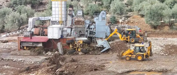 Το νερό από την έντονη βροχόπτωση παρέσυρε τα πάντα στο πέρασμά του. Ένα μηχάνημα της επιχείρησης αναποδογύρισε, όπως βλέπετε στις εικόνες του sindisi.gr, ενώ φέρεται να έχει παρασυρθεί από χείμαρρο και το αυτοκίνητο του φύλακα.