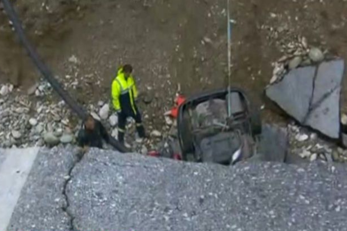 Άτομα που βρέθηκαν στο σημείο περιγράφουν στο MEGA πως ο οδηγός βρέθηκε μέσα στον δρόμο που άνοιξε στα δύο.