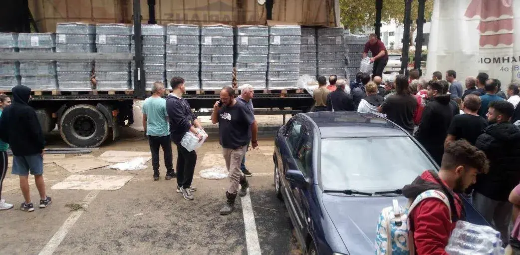 Η διακοπή της υδροδότησης, αλλά και η παντελής έλλειψη πόσιμου νερού έχουν ως αποτέλεσμα να «εξαφανιστούν» τα μπουκαλάκια νερού από τα μαγαζιά. Ετσι, ο Δήμος Βόλου αλλά και αρκετοί εθελοντές μοιράζουν στον κόσμο μπουκαλάκια με νερό.