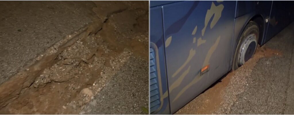 Νωρίς το πρωί της Πέμπτης, ΙΧ αυτοκίνητο έπεσε μέσα σε χαντάκι που είχε δημιουργηθεί στο οδόστρωμα από τη σφοδρή νεροποντή καθώς ο οδηγός δεν είχε καταλάβει ότι ήταν κλειστός ο δρόμος.