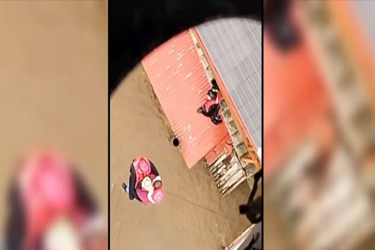Σε ένα εντυπωσιακό βίντεο που δόθηκε στη δημοσιότητα φαίνεται διασώστης να απεγκλωβίζει έναν πατέρα και τον παιδί του από στέγη σπιτιού.