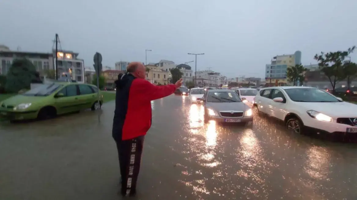 Ο κ. Μπέος βγήκε από το δημαρχείο και άρχισε να φωνάζει σε οδηγούς που κινούνταν στους πλημμυρισμένους δρόμους του Βόλου.