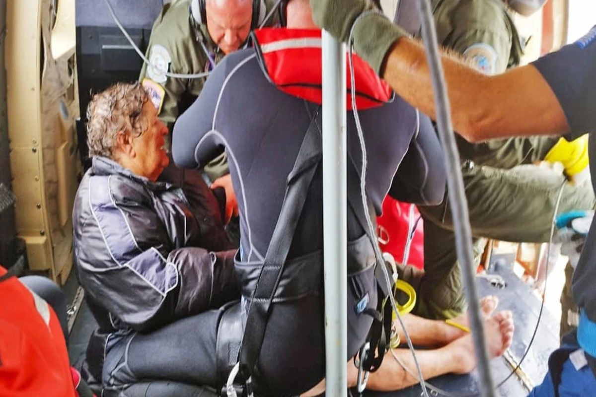 Όπως φαίνεται στο βίντεο διασώστης κατέβηκε με το ειδικό σχοινί από το ελικόπτερο, προσέγγισε την γυναίκα, την έδεσε πάνω του και στη συνέχεια τους ανέβασαν και τους δύο στο Super Puma.