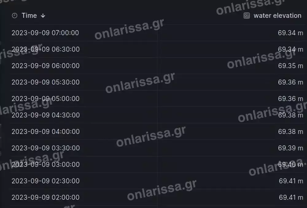 Όπως θα δείτε στα τελευταία δεδομένα που φέρνει στο φως της δημοσιότητας το onlarissa.gr η πιο δύσκολη στιγμή των τελευταίων εικοσιτετραώρων ήταν, χθες, Παρασκευή, όταν στις 8.30 η στάθμη είχε μετρηθεί στα 69,47 μέτρα. Έκτοτε, παρουσιάζεται μία πτωτική τάση, αφού σήμερα το πρωί του Σαββάτου η στάθμη μετρήθηκε στις 7 π.μ., στα 69,34 μέτρα.