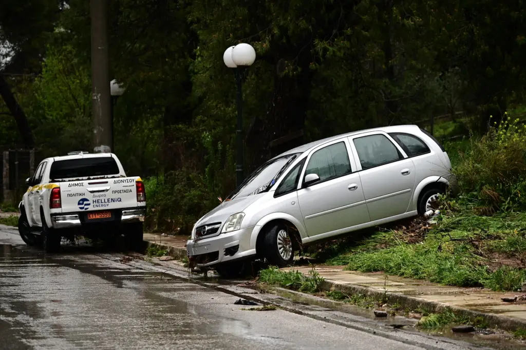 Ο Διόνυσος βρέθηκε αντιμέτωπος με πλημμυρικά φαινόμενα και καταπτώσεις, ενώ στον Ταύρο, στην Πειραιώς, δέντρο έπεσε στο δρόμο από την ένταση των ανέμων.