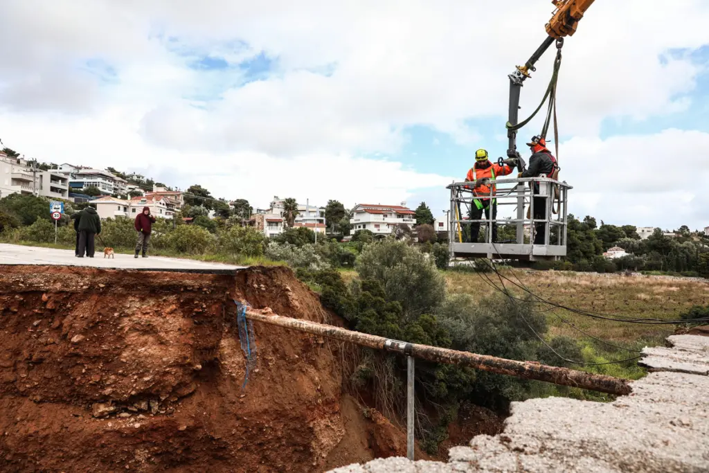Οι εικόνες από το drone του Orange Press Agency αποκαλύπτουν το μέγεθος της καταστροφής και τον κίνδυνο που ενείχε για ανθρώπινες ζωές, στην περίπτωση που περνούσε όχημα από το σημείο.