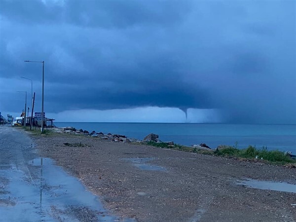 Πρόκειται για τον υδροστρόβιλο, τον οποίο απαθανάτισαν με τα κινητά τους τηλέφωνα πολίτες στα ανοιχτά των Νέων Μουδανιών, ενώ ήταν ορατός και από άλλες παράκτιες περιοχές του νομού Χαλκιδικής.