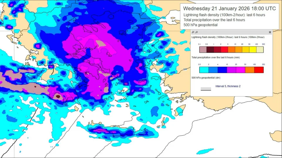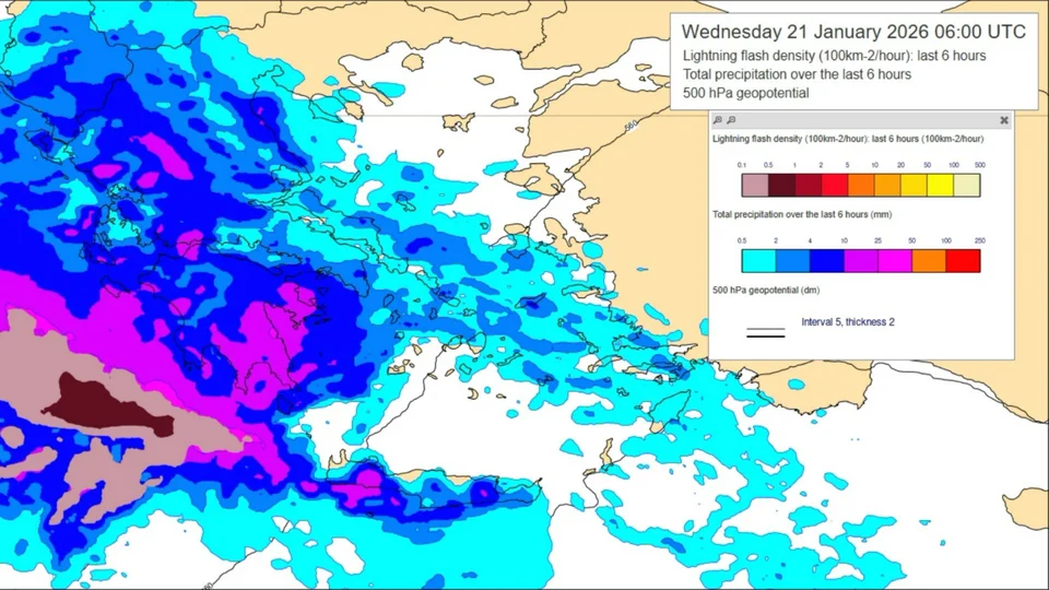 Κακοκαιρία προβλέπεται στη χώρα μας σήμερα Τετάρτη 21-01-2026 και μέχρι το μεσημέρι της Πέμπτης 22-01-2026 με κύρια χαρακτηριστικά: