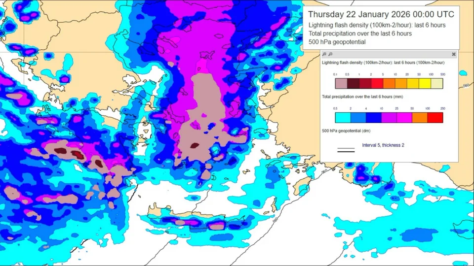 Δείτε βίντεο με τον 6ωρο υετό και την κεραυνική δραστηριότητα ανά 6 ώρες