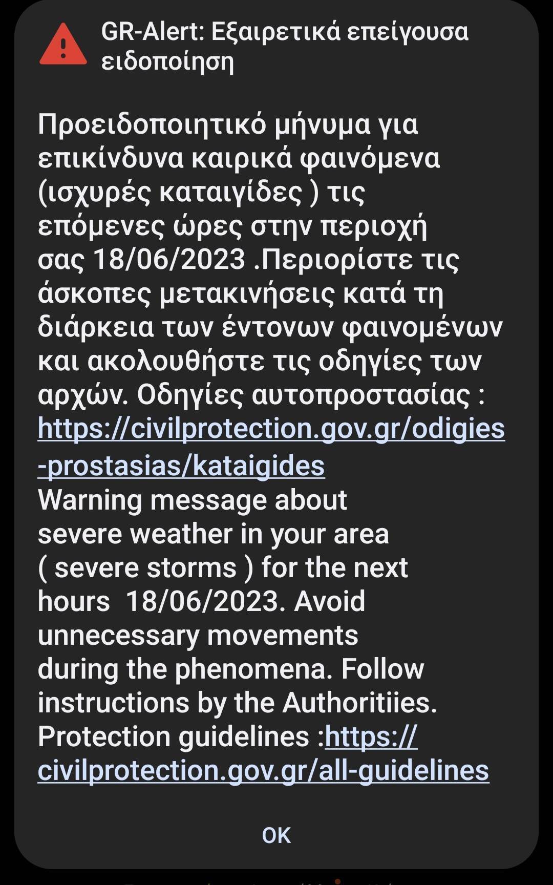 Το 112 ήχησε το πρωί της Κυριακής (18.06.2023) στους κατοίκους της βορειοανατολικής Αττικής, της Εύβοιας, της Μαγνησίας και των Σποράδων.