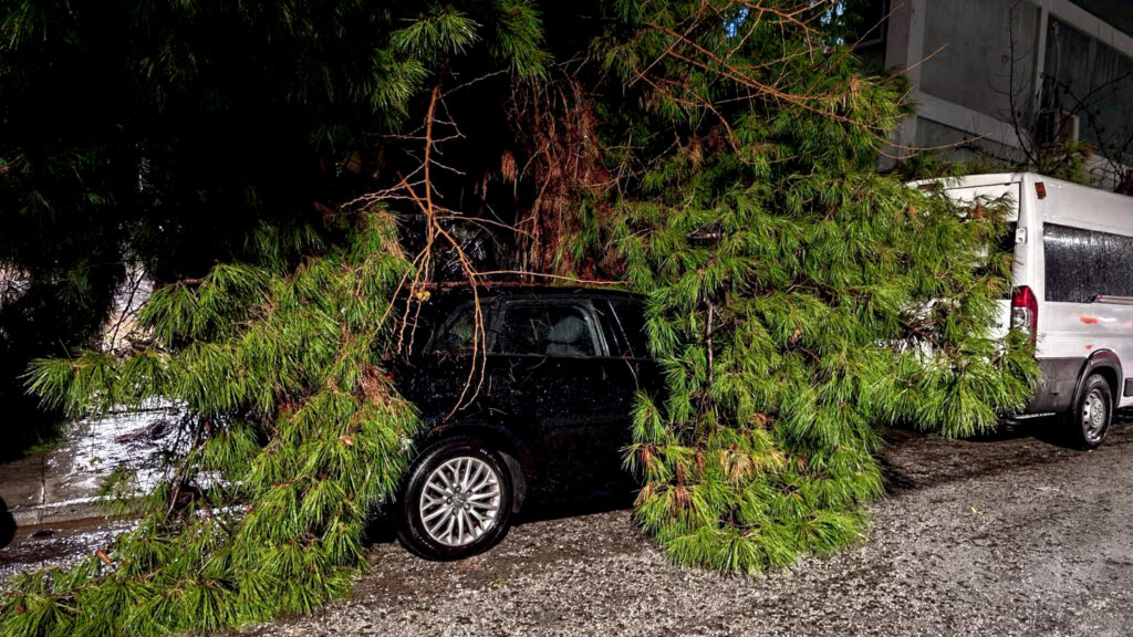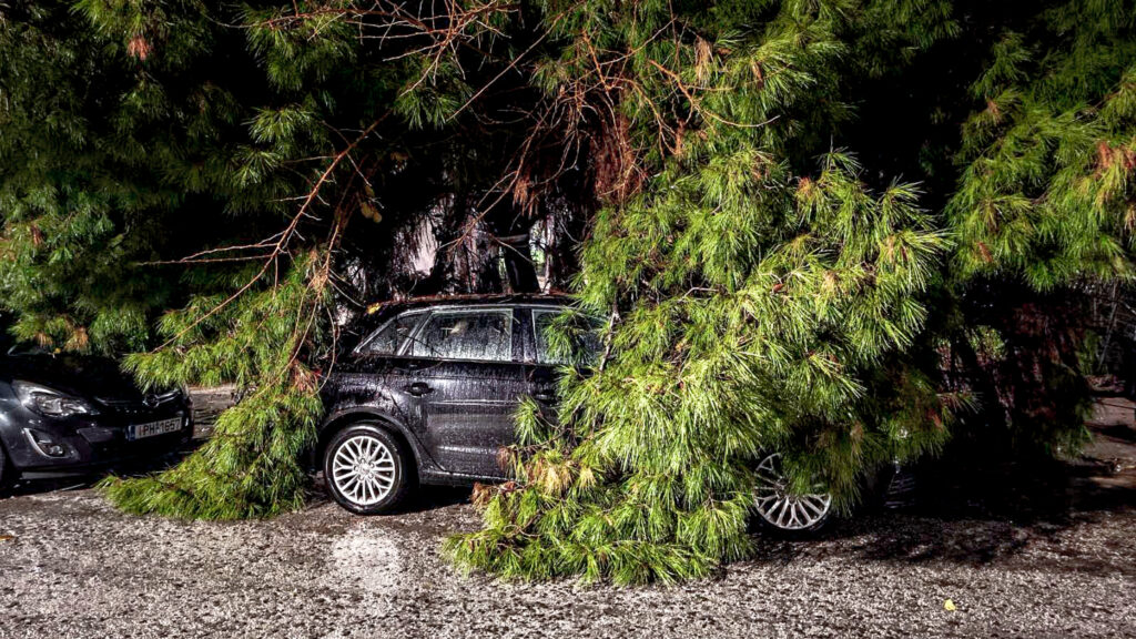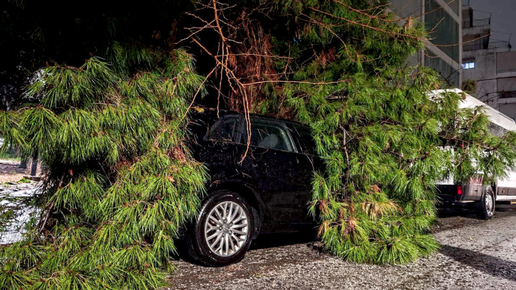 Στον Νέο Κόσμο, οι ισχυρές βροχοπτώσεις και οι θυελλώδεις άνεμοι χθες το απόγευμα είχαν ως αποτέλεσμα ένα δέντρο να λυγίσει και να πέσει πάνω σε σταθμευμένα οχήματα, προκαλώντας σοβαρές ζημιές.