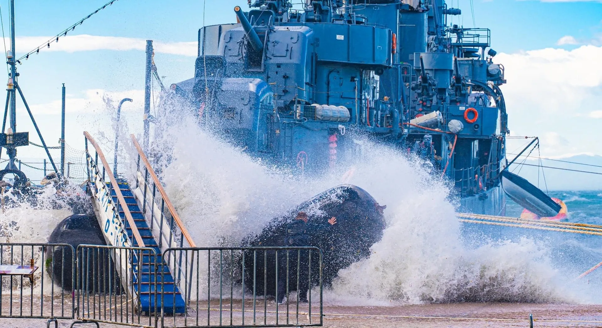 Στο σημείο έσπευσε ρυμουλκό σκάφος, προκειμένου να το κρατήσει ακινητοποιημένο. Το ρυμουλκό έχει δέσει από την πλευρά του Μεγάρου Μουσικής από την οποία δέχεται τα χτυπήματα του ανέμου, που φτάνει τα επτά μποφόρ.