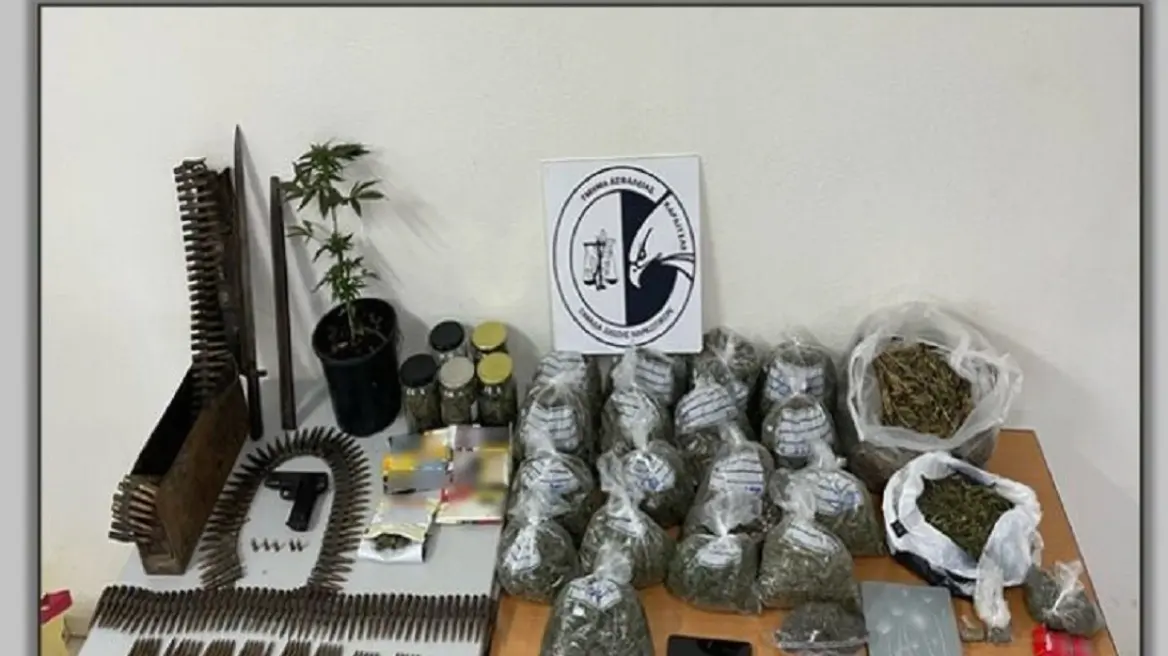 Αλλά και κατά την έρευνα των αστυνομικών, βρέθηκαν στο σπίτι ένα λειτουργικό πιστόλι με πέντε φυσίγγια, ένα μεταλλικό κουτί στρατιωτικού τύπου που περιείχε 252 φυσίγγια πολεμικού τυφεκίου και μια ξιφολόγχη.