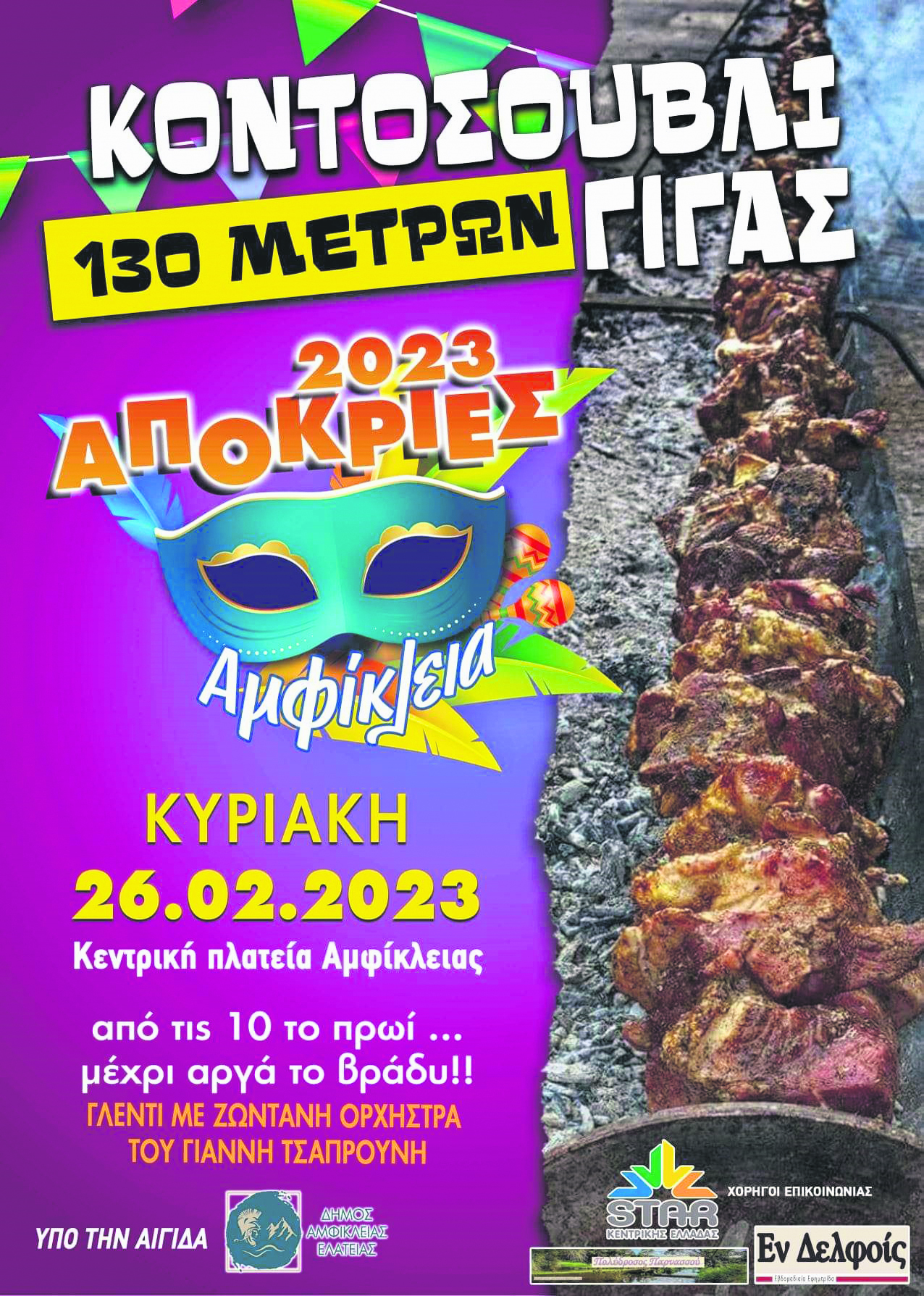 Στην Αμφίκλεια, τις Απόκριες, ο επισκέπτης μπορεί να ακούσει δαδιώτικα αποκριάτικα τραγούδια, να σεργιανίσει στα σοκάκια της κρατώντας κουδούνια, να χορέψει γύρω από τη μεγάλη φωτιά στην πάνω πλατεία, να ξεφαντώσει στους ρυθμούς του Καρναβαλιού, να γευτεί το κοντοσούβλι-γίγας 130 μ. που ψήνεται κατά μήκος του κεντρικού δρόμου -πρωτοτυπία των Δαδιωτών και πόλος έλξης-, να δοκιμάσει παραδοσιακή φασολάδα και, βέβαια, να αναπνεύσει καθαρό αέρα.